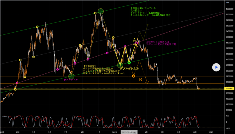 FTXの破産報道も重なり、去年の12月水準まで落ちてしましました。