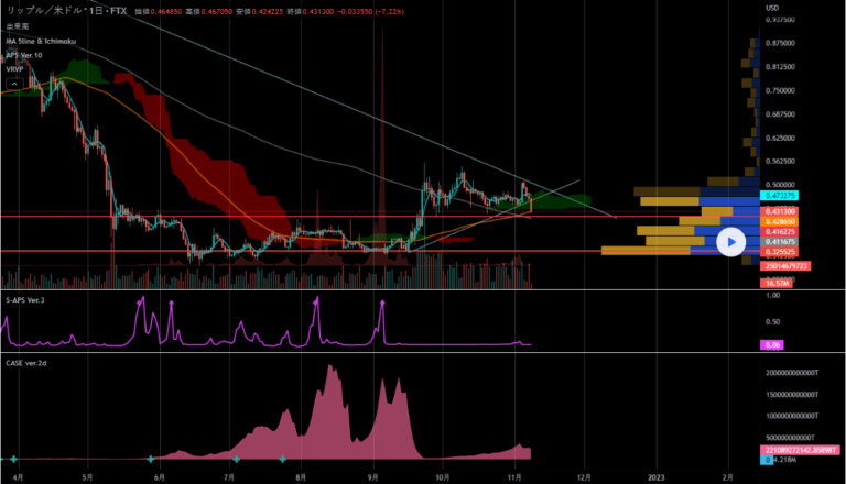 リップルは0.47ドルを叩かれて、再び下落、0.43ドル台前半までの下落となった