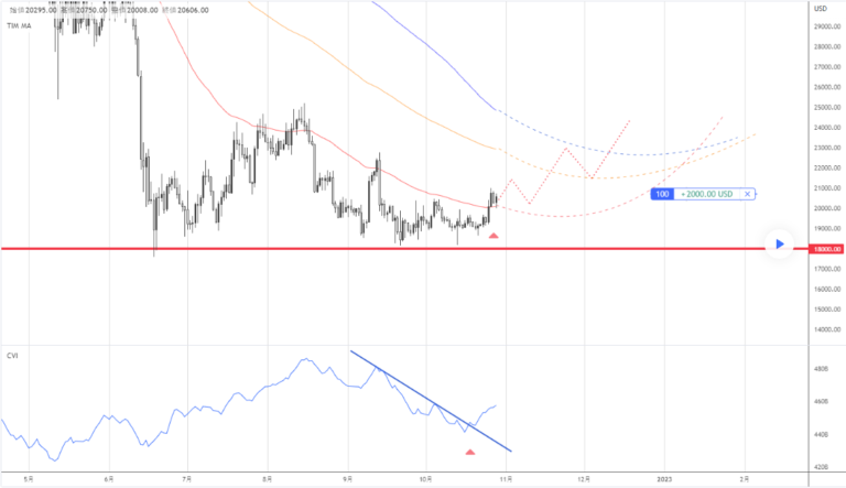 これから11月~12月にかけて米国の利上げペース鈍化に相場のセンチメントが移るためビットコインも米ドル売りに追随する。