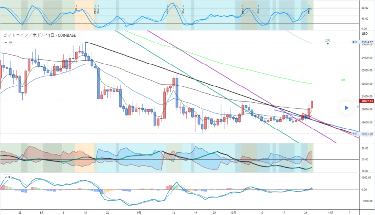 ビットコインが黒3ヶ月線を上抜け、短期の動きで支えられる形を作ってから上昇しています。