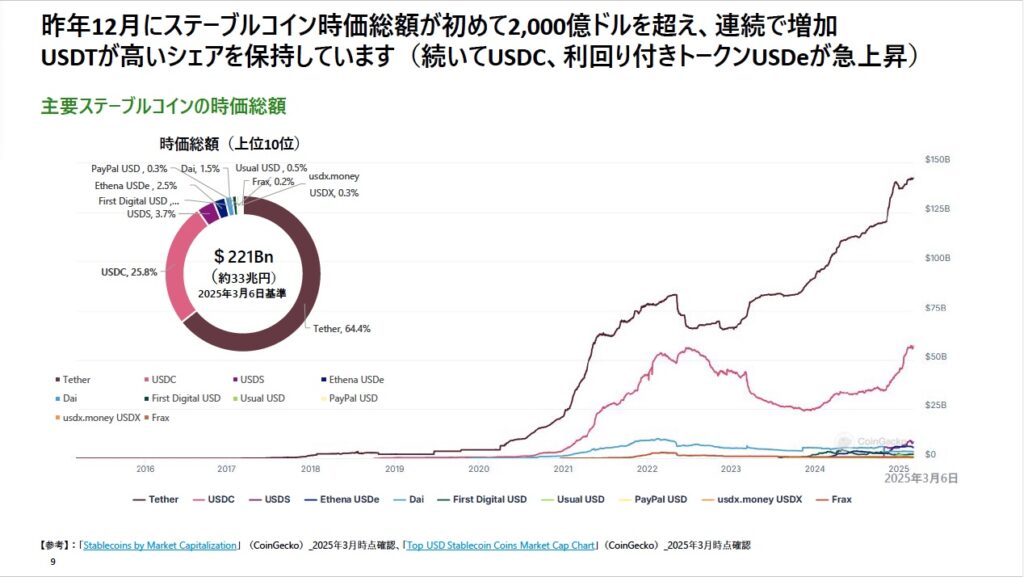 「不正利用等懸念」についての把握を主な目的としているため、2.と3.に多くの頁が割かれているが、ステーブルコインの現状を把握したい人にとっても、1.は非常に有益な内容になっている。